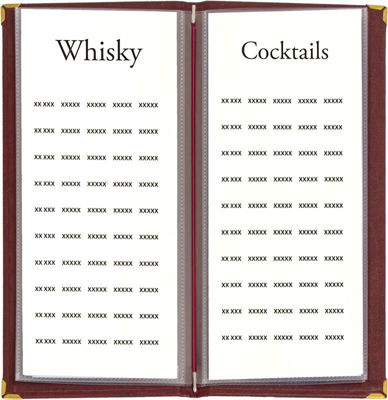 Bar-, Eis-, Getränkekarte Cordula Designleder A4 superschmal für Doppelhüllen
