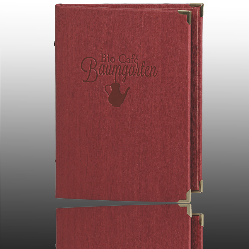 Speisekarte mit Klammerbindung in exklusivem Ahorndesign.