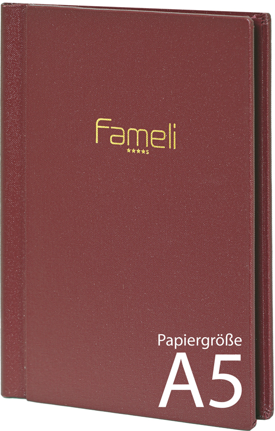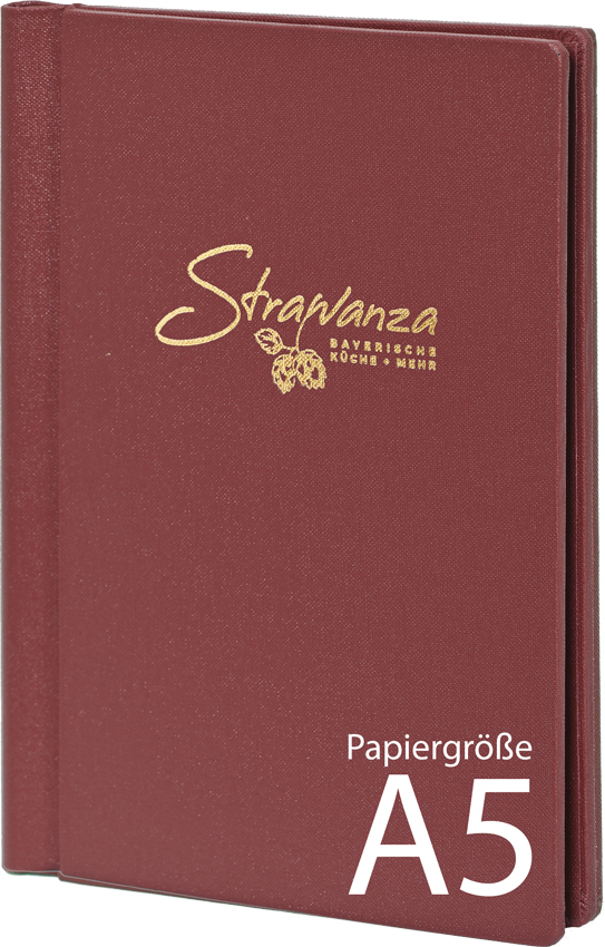 Verstärkte Klemmkarte auch edlem Buchleinen mit Prägung oder Druck Ihres Schriftzuges oder Logos.