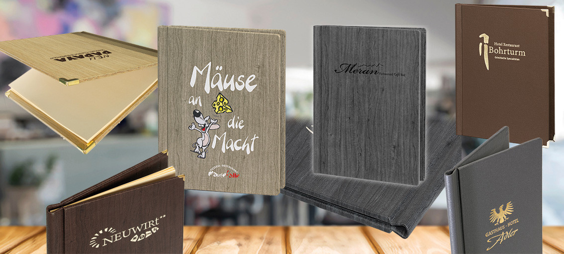 Klemmspeisekarte mit breitem Rücken in Flechtoptik.