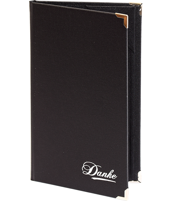 Exquisite Weinkarte in Buchform aus kaschiertem, robustem Leineneinbandmaterial mit Kartoneinschüben.